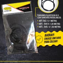 TENSOR ELASTICO / ZUNCHO / LINGA DE 1 METRO CON GANCHOS PLASTICOS REGULABLES